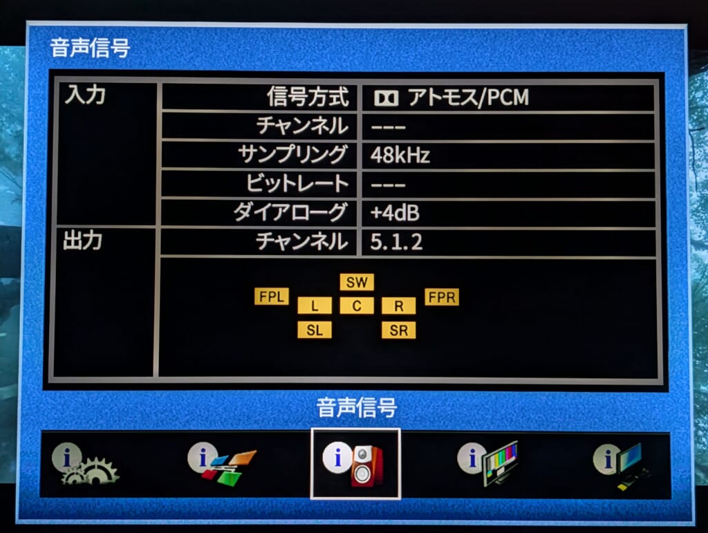 ですが、この「ノーマル」表示になっているとき (Dolby Sound がオフのとき) でも、バーチャライザー (Dolby Surround Virtualizer) のような Dolby Atmos の再生に必要最低限な機能は暗黙的に適用され、ダウンミックスになることはありません。
